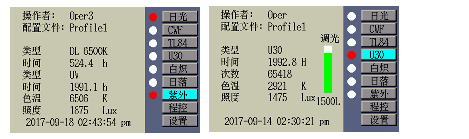 ▲可根据客户的要求定制D65光源的照度(1000~3000Lux),可手动调整各组荧光光源的照度,适应不同的用户需求。